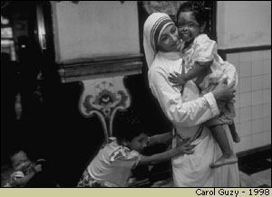 A sister from the Missionaries of Charity tends to young children at one of Mother Teresa's orphanages.